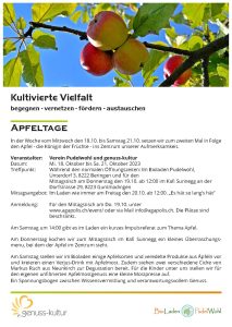 Am Samstag um 14:00 gibt es im Laden ein kurzes Impulsreferat zum Thema Apfel.